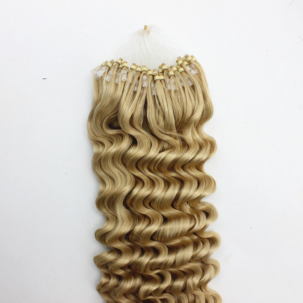 Brazilian Virgin Remy Hair 22 Blonde Deep Wave 100 Strandslot Micro Bead Loop Ring Hair Extensions